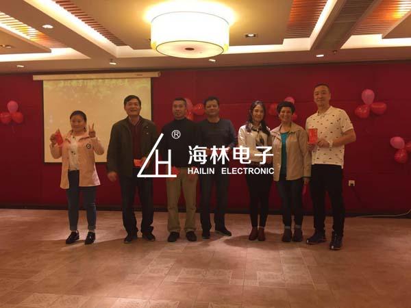 首先是我們的周宏英總經(jīng)理為我們致詞,周總經(jīng)理表達(dá)了對(duì)海林電子的寄望及對(duì)鼓舞,邢瑞林董事長(zhǎng)隨后為大家送上祝福:2016年全體員工共同努力,圓滿完成公司的各項(xiàng)公司目標(biāo),祝大家合家歡樂(lè),身體健康,萬(wàn)事如意。