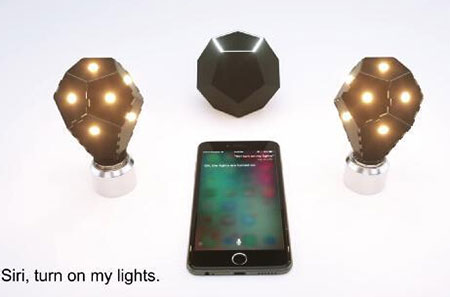 由于采用了十二面體的特殊設計,這些燈泡可以無需燈罩直接使用,或是被用在一系列開放式的裝飾臺燈當中。它們的LED芯片當中還嵌入了打印電路板。