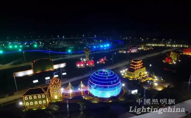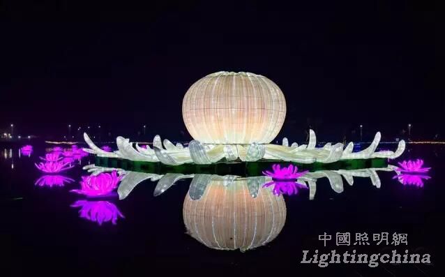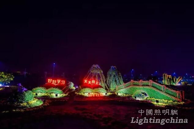 “偉大轉(zhuǎn)折”:主體是高6米的燈墻及菊花高鐵、高8米的燈飾奧運火炬;
